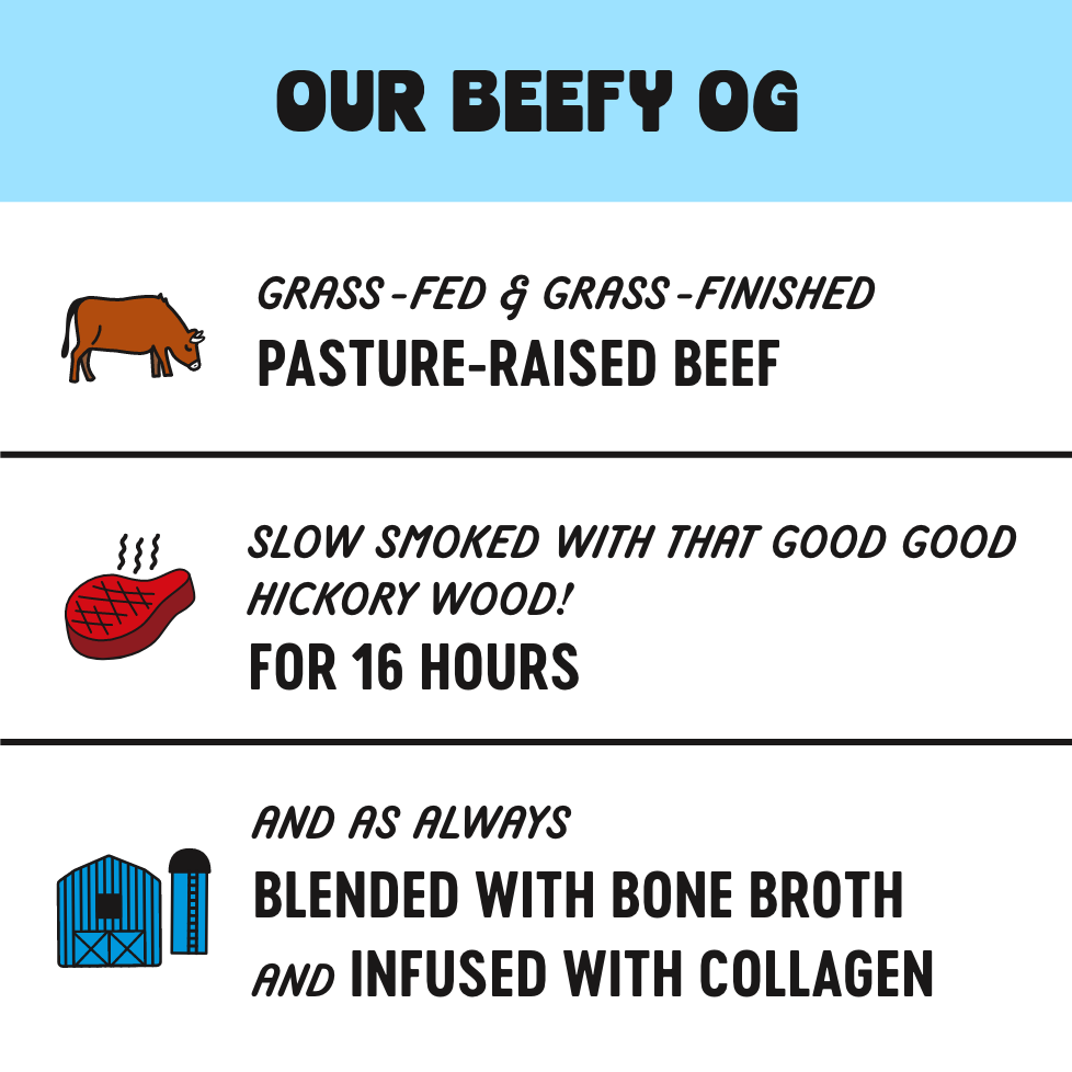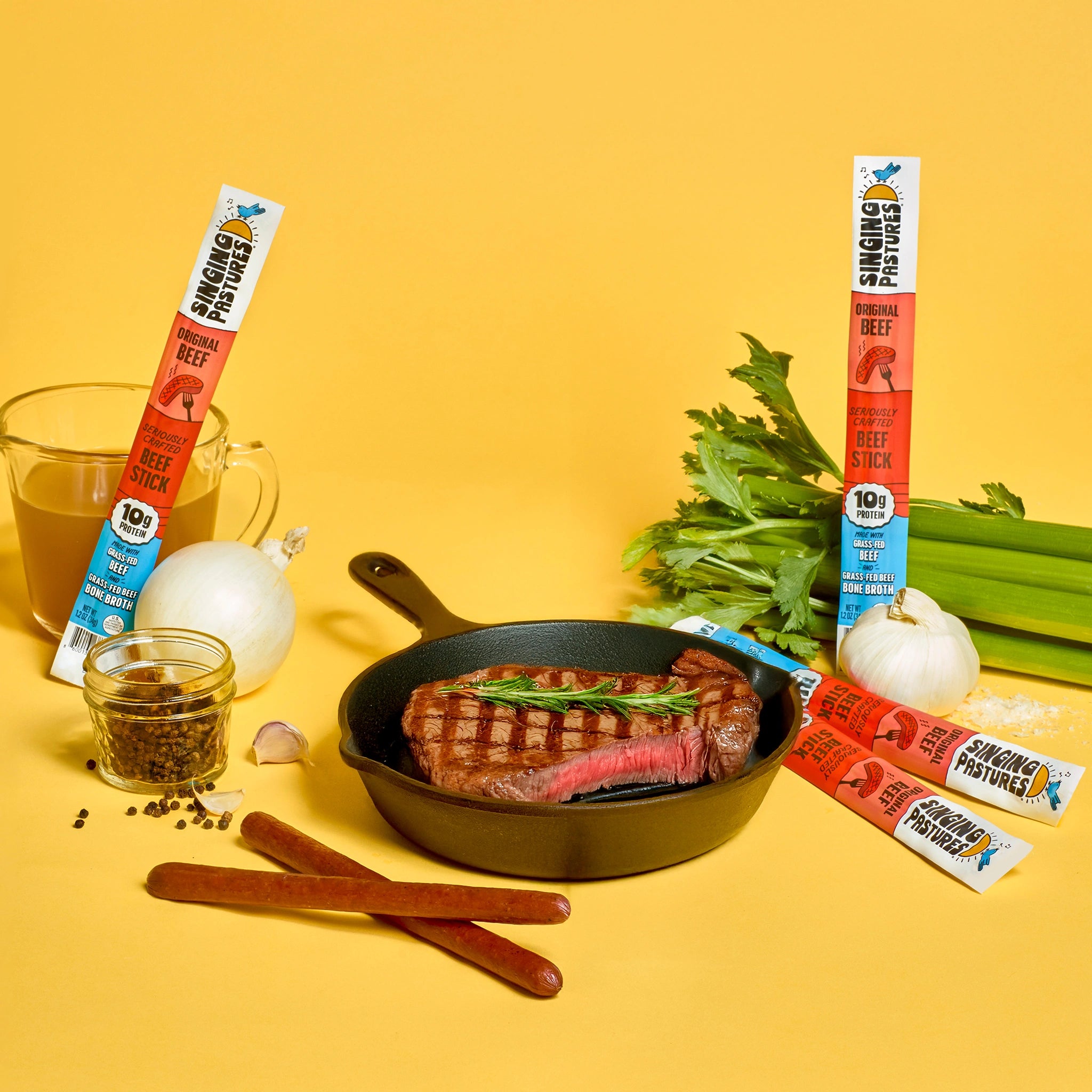 • Our sticks are infused with beef bone broth (which naturally contains collagen!) to make a more functional, juicy stick.