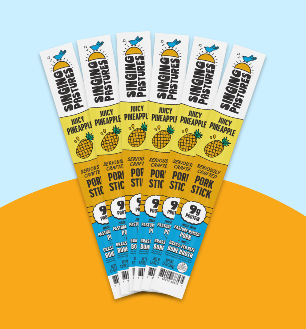 100% pasture-raised pork, pineapple chunks (pineapple, sugar), water, sea salt, non-GMO dextrose (used to initiate fermentation), 2% or less of the following: cherry juice powder, celery juice powder, black pepper, lactic acid starter culture, stuffed in a dye-free beef collagen casing.